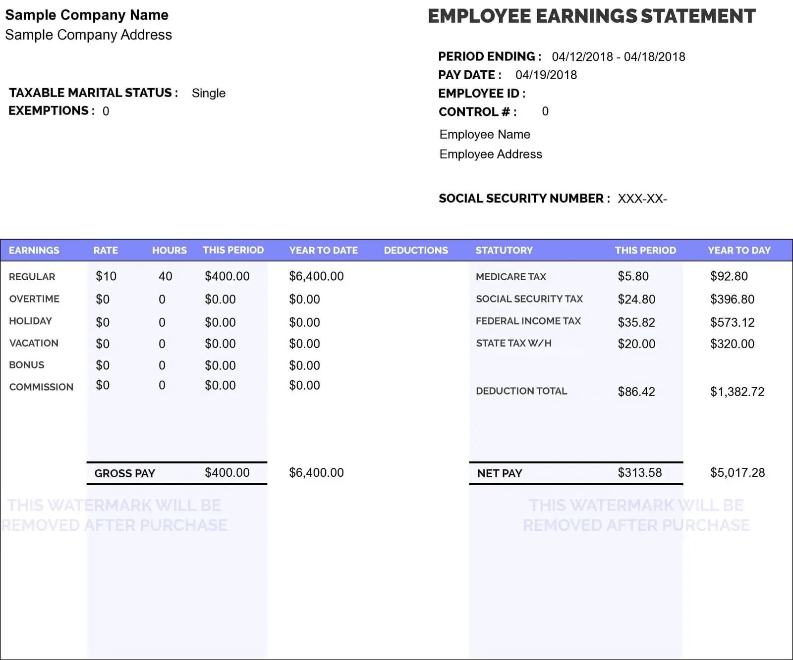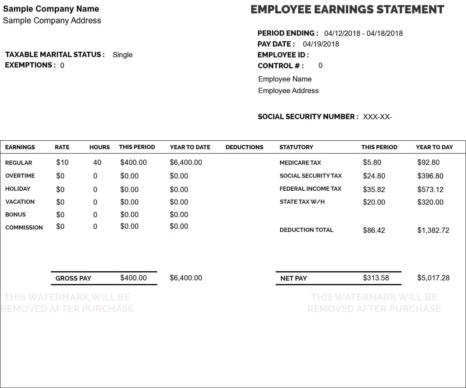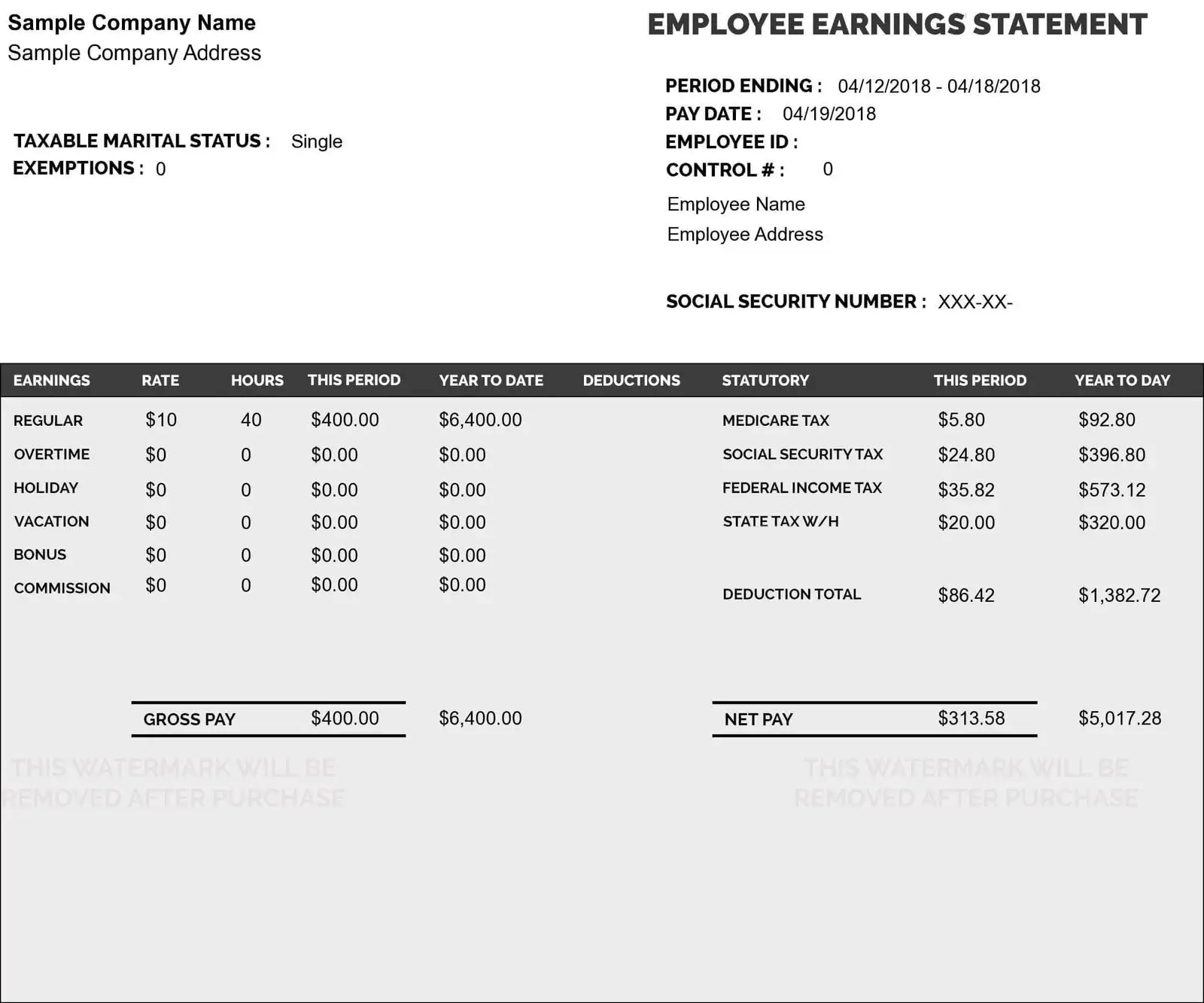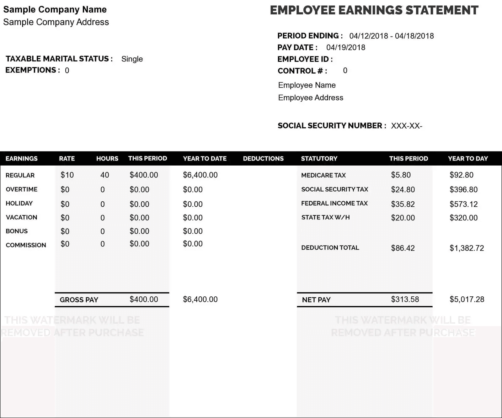 - Earnings Details: You need to enter the gross income, net pay, and year-to-date total, etc.